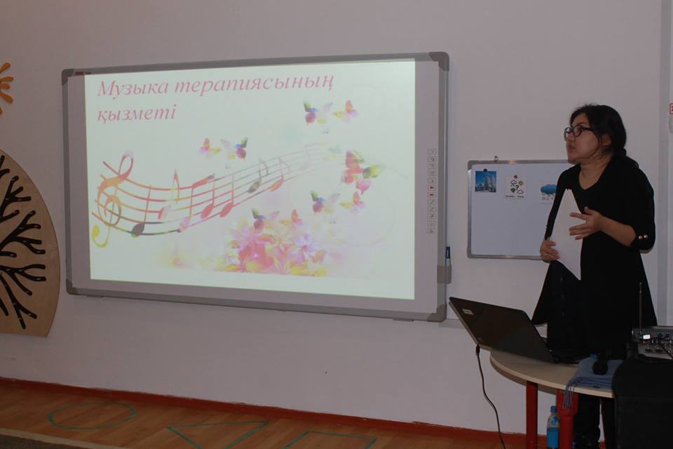 В центр дневного пребывания "Үміт" для детей с ограниченными возможностями учитель мызыки Уракбаева Динара Болатқызы провела доклад на тему роль "музыкальной терапии"в корекции детей с ограниченными возможностями.