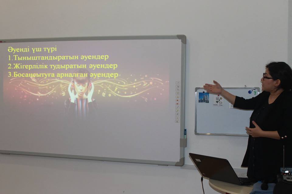 В центр дневного пребывания "Үміт" для детей с ограниченными возможностями учитель мызыки Уракбаева Динара Болатқызы провела доклад на тему роль "музыкальной терапии" в корекции детей с ограниченными возможностями. Было сказано и о влиянии разнотипной музыки, о жанре музыкального произведения, подбираемой ею с индивидуальным подходом в зависимости от дигноза и предпочтения услугополучателя. Также было сказано, на какую часть организма влияет та или иная музыка. Презентовав свою работу наглядно обоснованно доказав правоту и достоверность своих слов отлично выступила.