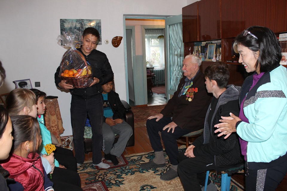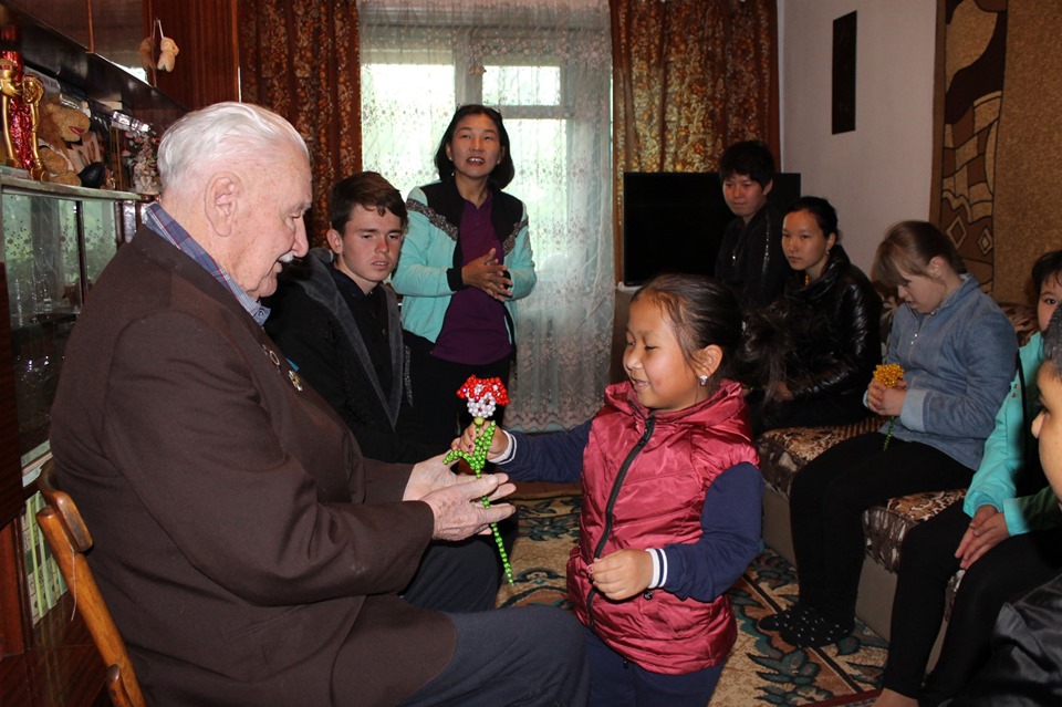 Для нашей страны приближается незабываемый праздник-День Победы. Никто не забыт, ничто не забыто! Сегодня заместитель директора по социальной работе Центра дневного пребывания «Үміт» для детей с ограниченными возможностями управления координации занятости и социальных программ Алматинской области Дастан Берикович и дефектологи вместе с детьми-получателями услуг поздравили ветерана войны Огнева Николая Ивановича с наступающим Днем Победы 9 мая. Ребята рассказали ветерану стихи и подарили подарки, сделанные своими руками. Николай Иванович напомнил детям о тех трудных моментах, которые пережили в годы войны, и пожелал не видеть страшную войну, которую пережил сам, призвал защищать Родину, бережно относиться к окружающей среде. Цель встречи-уважать ветеранов Великой Отечественной войны, не забывать их подвиги,воспитывать у детей чувство патриотизма, и любовь к родине.