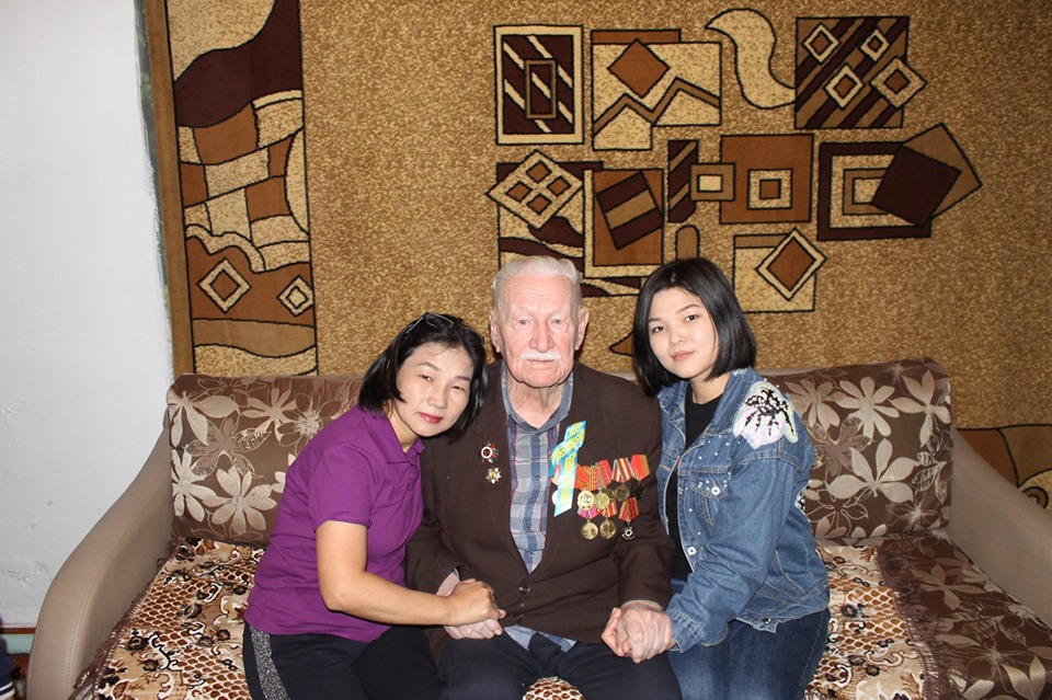 Сегодня заместитель директора по социальной работе Центра дневного пребывания «Үміт» для детей с ограниченными возможностями управления координации занятости и социальных программ Алматинской области Дастан Берикович и дефектологи вместе с детьми-получателями услуг поздравили ветерана войны Огнева Николая Ивановича с наступающим Днем Победы 9 мая.